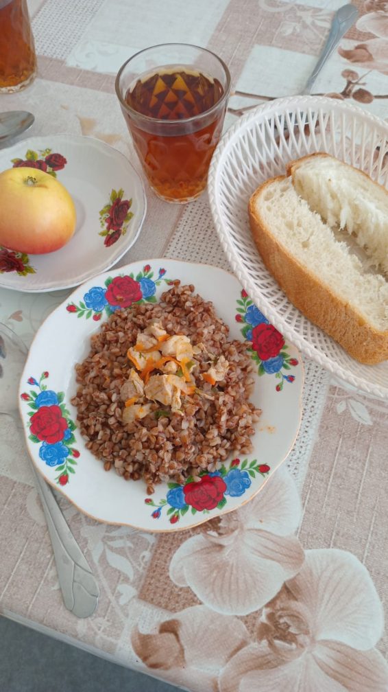 Көкөністер мен құс еті қосылған қарақұмық ботқасы
