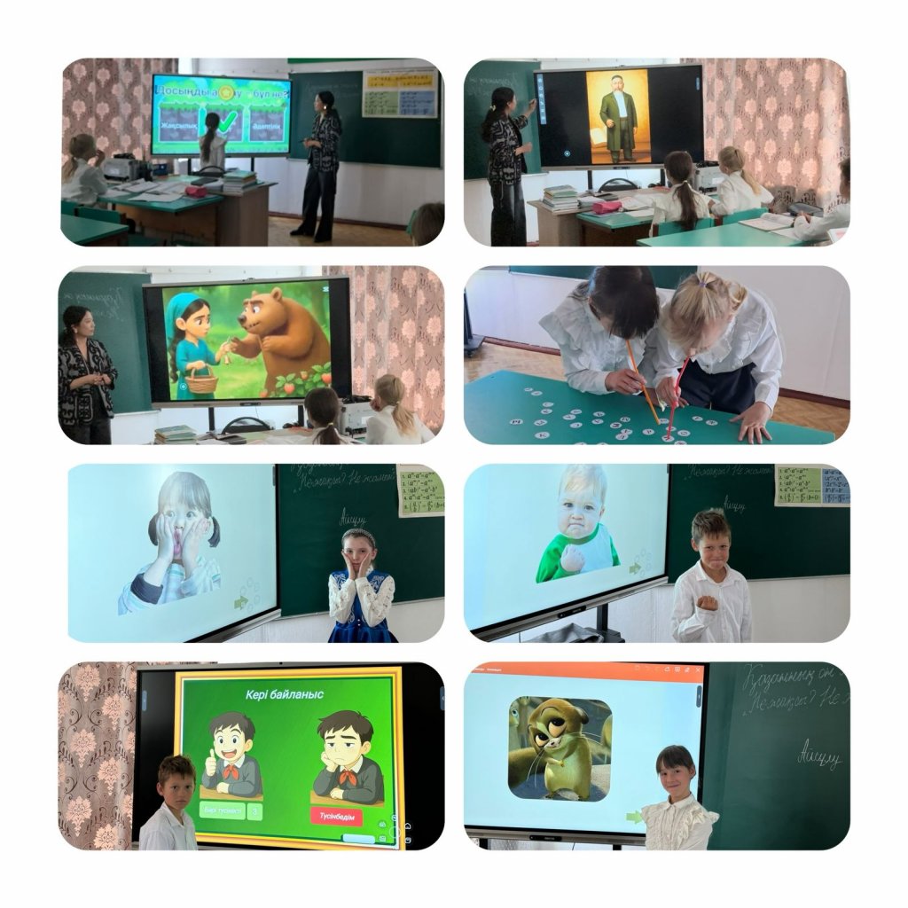 Іс-шара барысында оқушылар мультфильм көріп, мақал-мәтелдер айтып, топтық тапсырмаларды орындады. Балалар белсенділік танытып, жақсы қасиеттер мен жаман қылықтарды талдап, өз ойларын еркін жеткізе білді.
