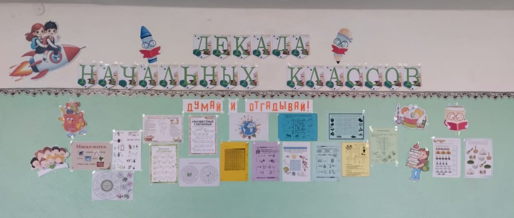 Бастауыш сыныптар онкүндігі барысында "Ойлан және тап"қабырға газеті рәсімделді. Қабырға газетінде әртүрлі пәндер бойынша қызықты материалдар көрсетілген. Мұнда кроссвордтар, жұмбақтар, шарадтар, басқатырғыштар бар. Қабырға газеті түрлі-түсті және өте қызықты болды