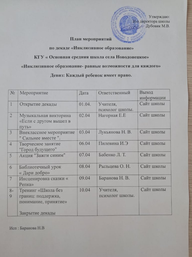 Коммунальное государственное учреждение "Основная средняя школа села Новодонецкое отдела образования по Буландынскому району управления образования Акмолинской области"